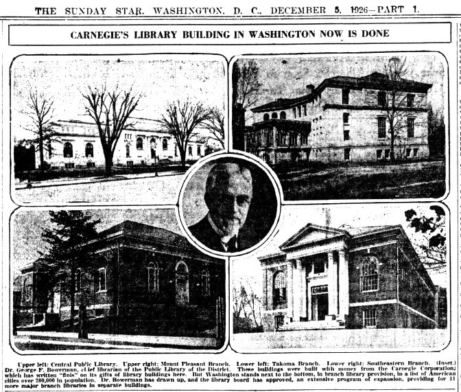 As The Evening Star wrote, “The Mount Pleasant branch now holds the distinction of ranking first on the list of the three [branch libraries] in architectural beauty, size and book capacity. The other branches are in Takoma Park and the Southeastern section of the city.”